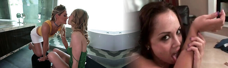 Coochie toying blonde fetish lesbians piss on each other