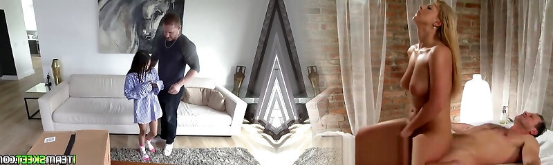 тщедушный и тощий подросток с платиновой блондинкой глубоко глотает и сверлит гигантский член монстра