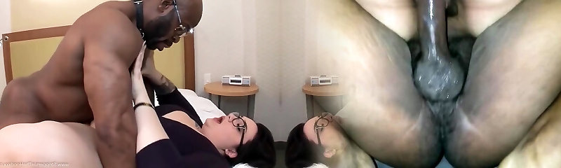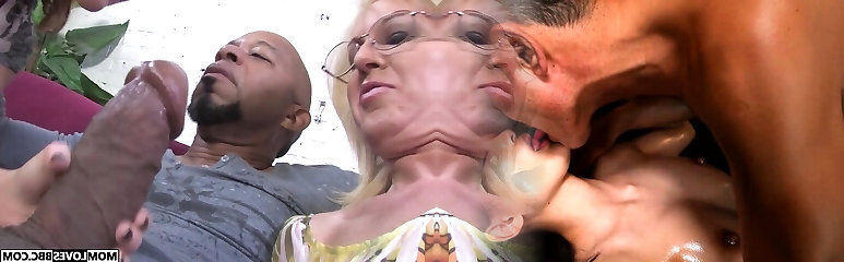 зрелая светловолосая заставляет большой черный член исчезнуть в ее муфте