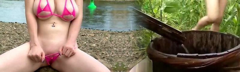 даниэль запихивает свое бикини в свою вульву в сольном клипе на открытом воздухе