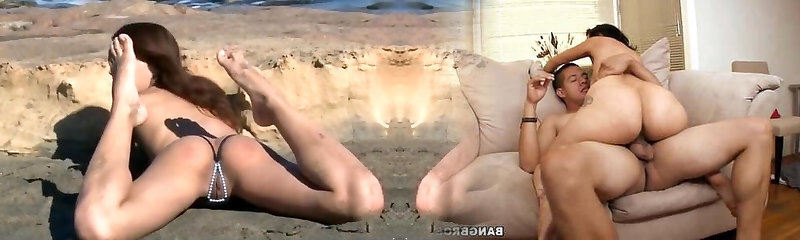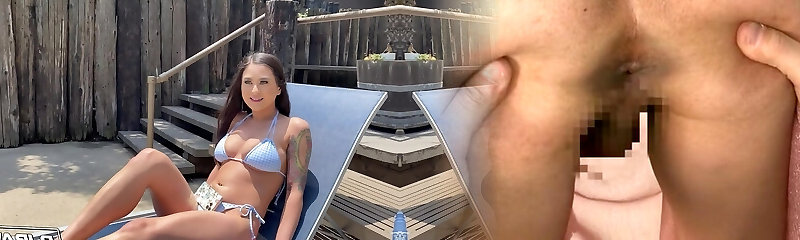 анальное проникновение с худенькой брюнеткой в бикини