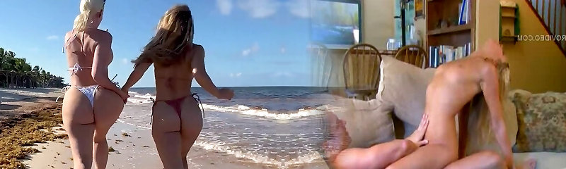 чудесная пышная шатенка в купальнике дама кэсси скачет на безудержном стояке по пляжу