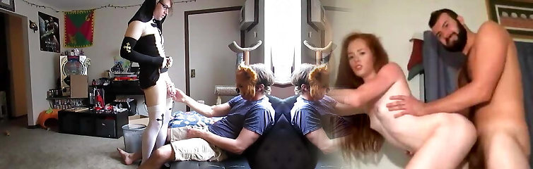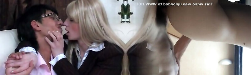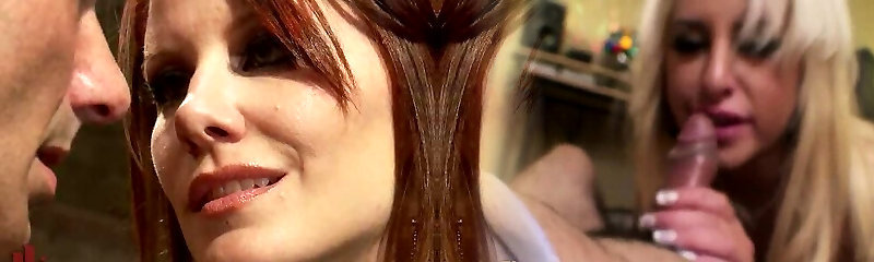рыжий кроссдрессер жестко трахает белокурую девицу