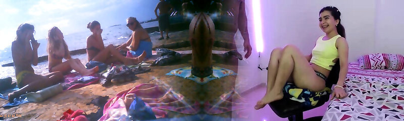 вспышка члена в трусиках для группы девушек на пляже