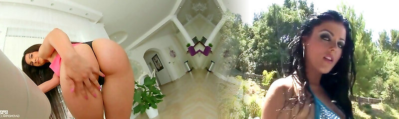 соблазнительная сексапильная красотка с большой грудью бекки бандини вцепилась в толстую ручку перил для эякуляции