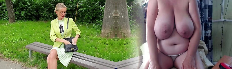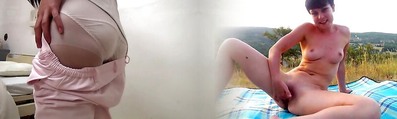большегрудая пума в трусах и чулках с камнями