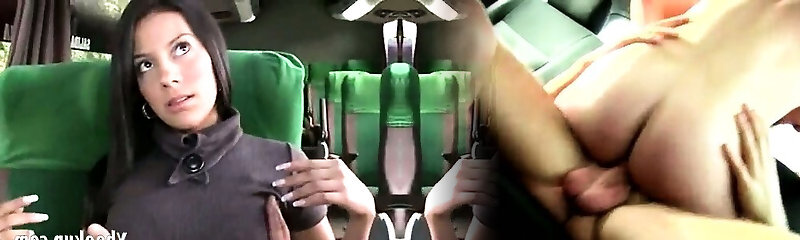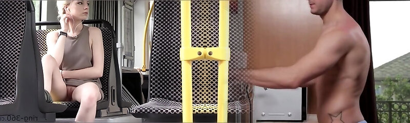 молоденькая студентка-шлюха трахается с парнем постарше прямо в автобусе на публике