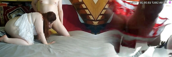 непослушный сынок стягивает с мамы трусы и жадно ест аппетитный зад