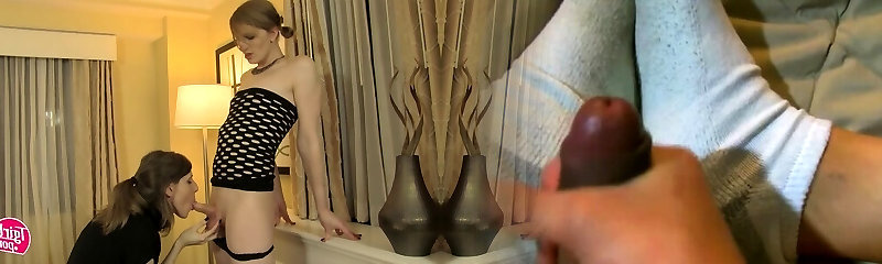 Transgender Princess voyeur jerks off dick before fucking ass of sumptuous Jade Venus
