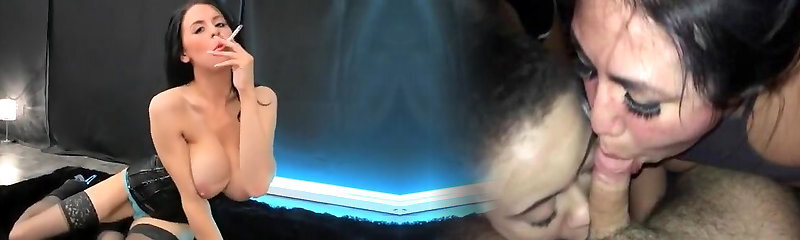 Huge boobed Italian hottie smoking ciggy seductively