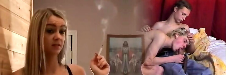 Super-naughty Towheaded Seduces A Hot Guy And Smokes While Giving He