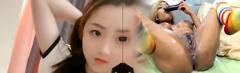 Horny amateur masked Asian teen toying on webcam show