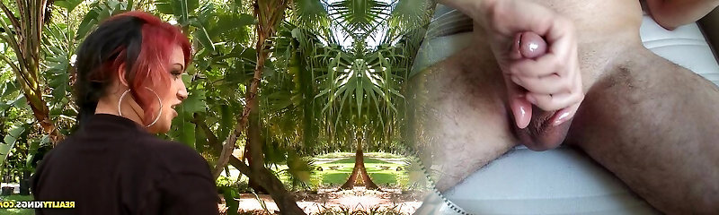 Hot ginger-haired slut hungry for BBC sex enjoys gobbling her friend's humungous monstercock and then asks him to destroy her pussy