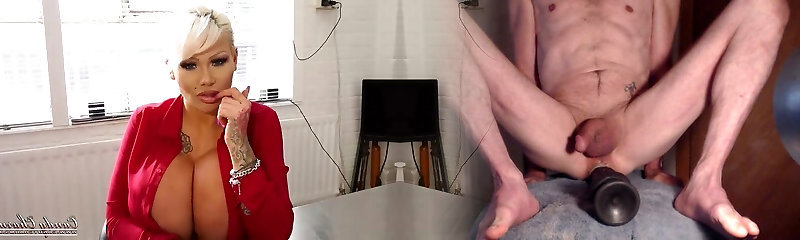 Candy is a Bad Headteacher and dildo fucks her bald pussy