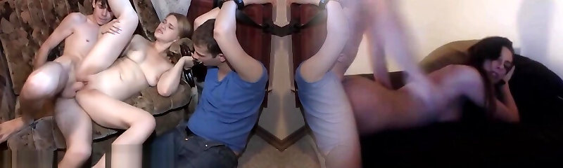 Horny Russian students sharing boyfriend's dong in a dorm bedroom