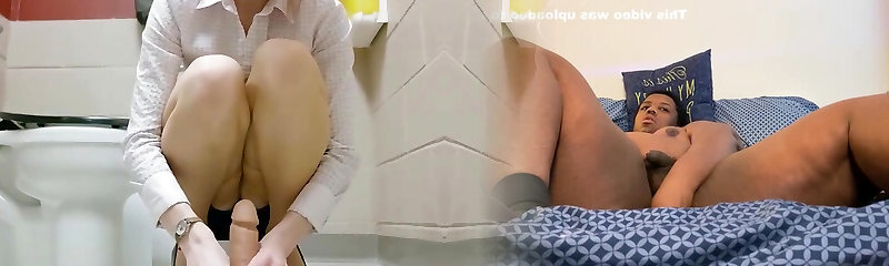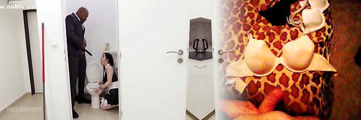 Amazing hot babe in lingerie plugs her brown sphincter in office toilet at work