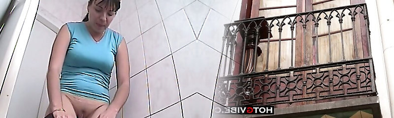 Juggy redhead hussy peels off in the toilet and shows how she urinates