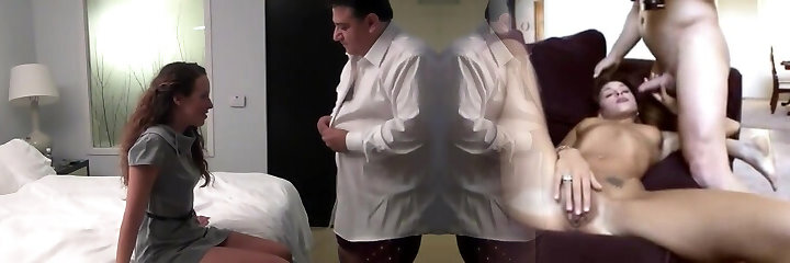 Brunette pippin kisses her Boyfriend and seduces old and gross man