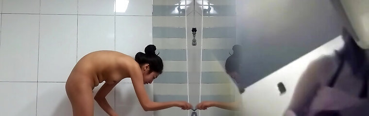Ugly frightening platinum-blonde oldie takes a shower and teases her mature cunt