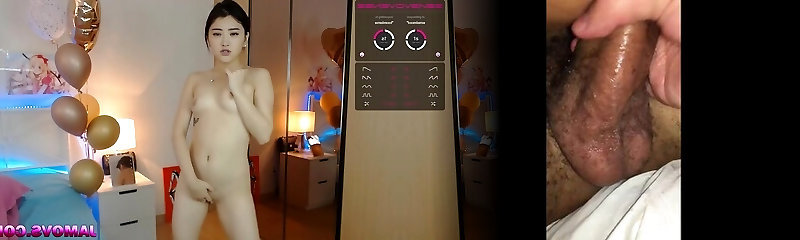 漂亮自然的女孩Hiromi展示她的公鸡挤压胸部在温柔的独奏